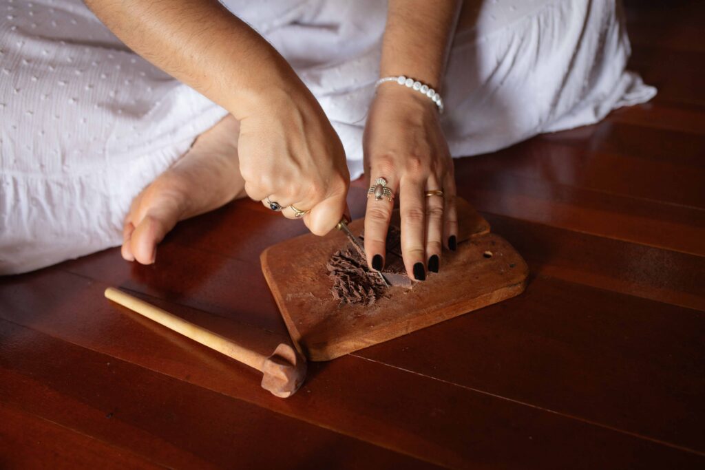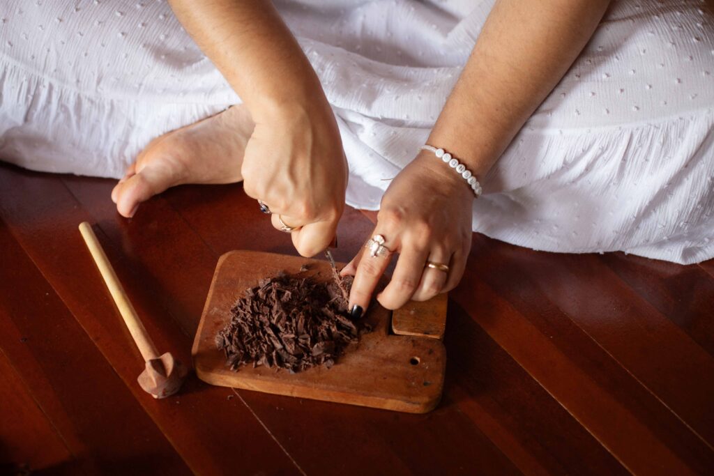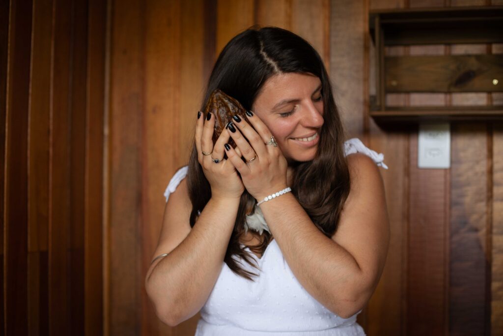 Aroma de cacau. Foi por esse fio invisÃvel e sagrado que eu e Selina nos conectamos. Participávamos de um grupo de mulheres em torno dessa medicina, ela na Alemanha e eu no Brasil. Ainda à distância, sentimos uma afinidade imediata. Duas geminianas, ambas em busca de algo que fosse muito além de fotografias bonitas: um encontro com a alma.