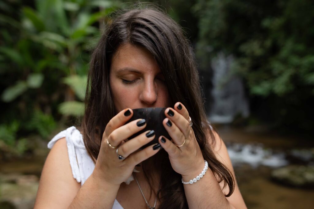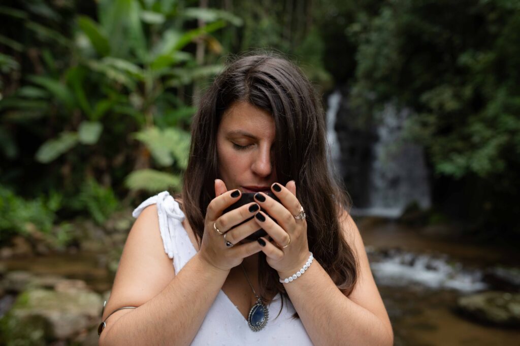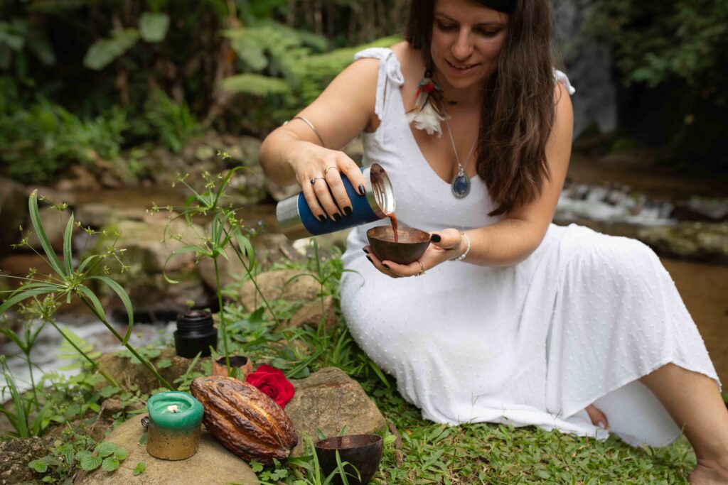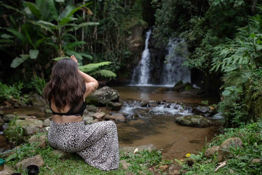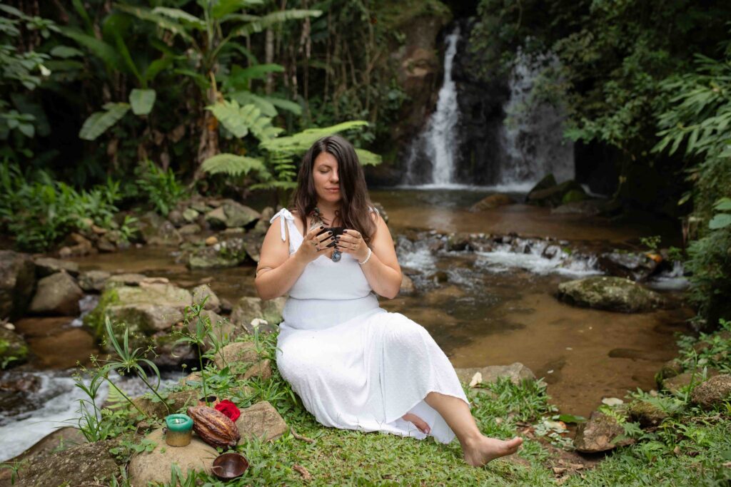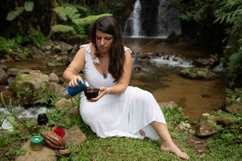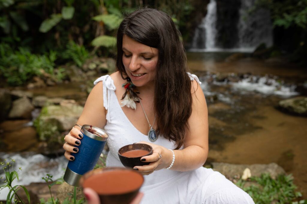 Descemos para o local do ensaio. À beira da cachoeira, consagramos nosso cacau sagrado. A natureza testemunhou, junto comigo, esse renascimento feminino tão especial.