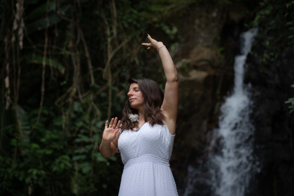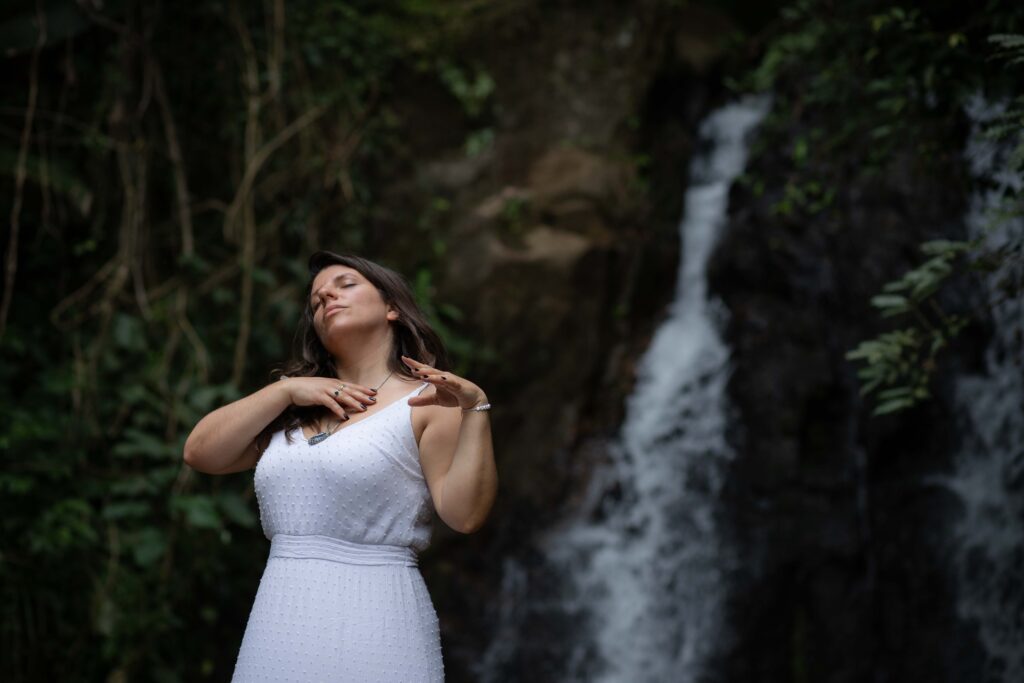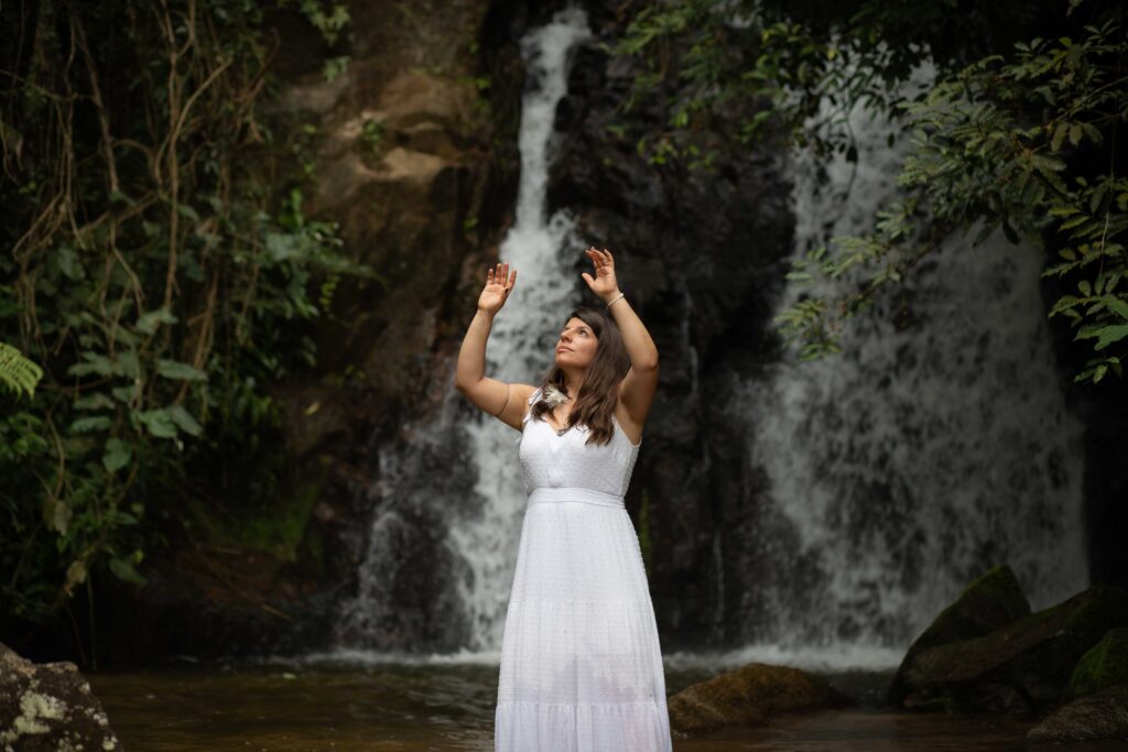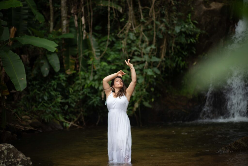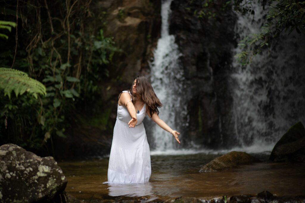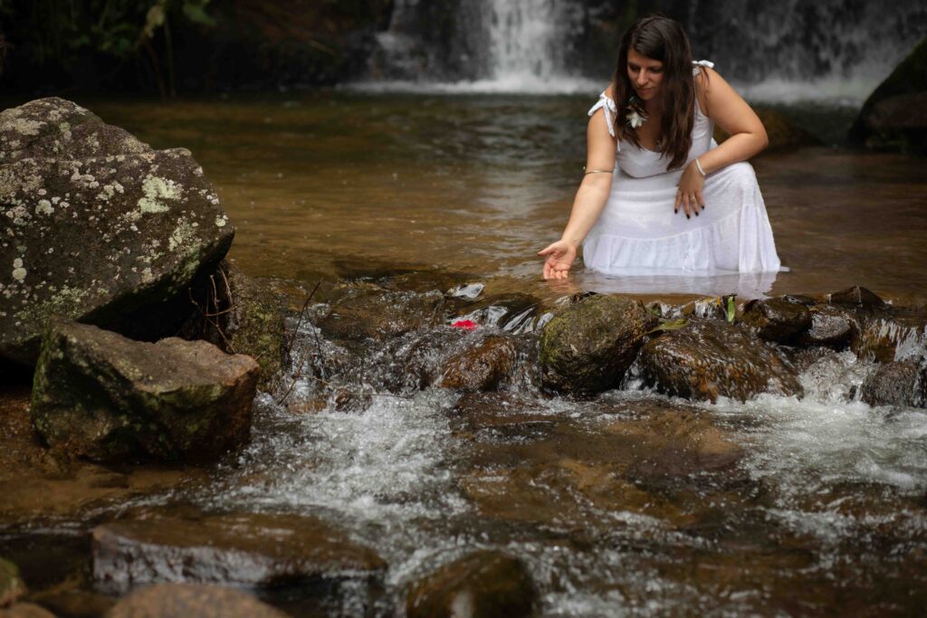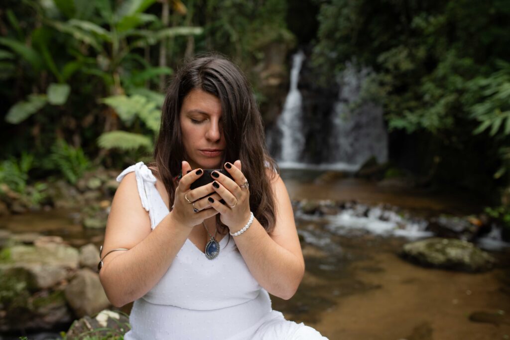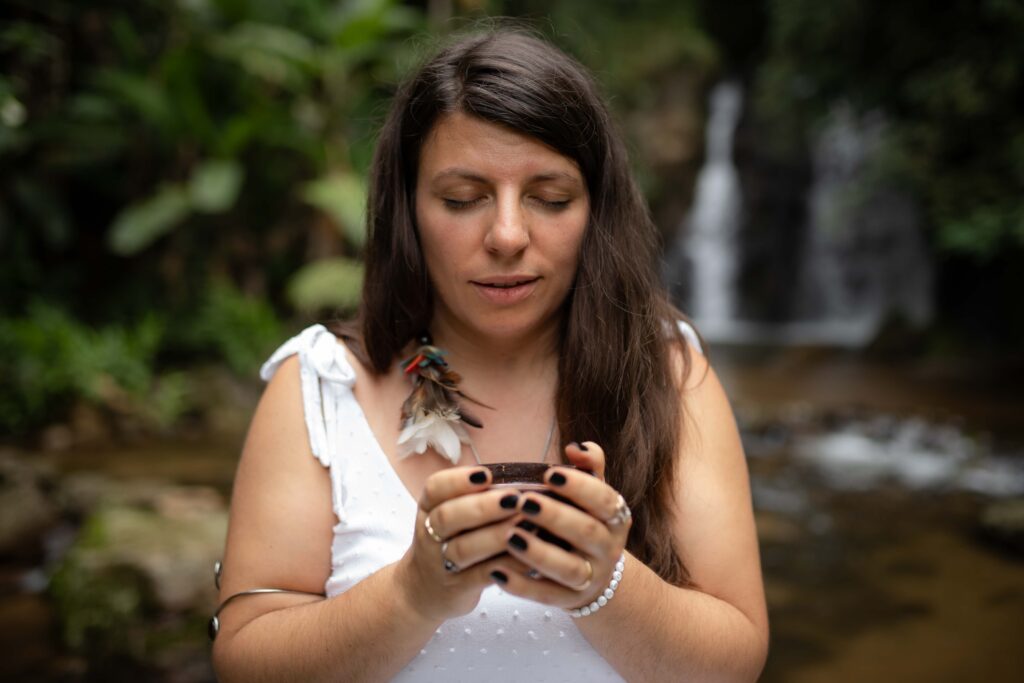 Descemos para o local do ensaio. À beira da cachoeira, consagramos nosso cacau sagrado. A natureza testemunhou, junto comigo, esse renascimento feminino tão especial.