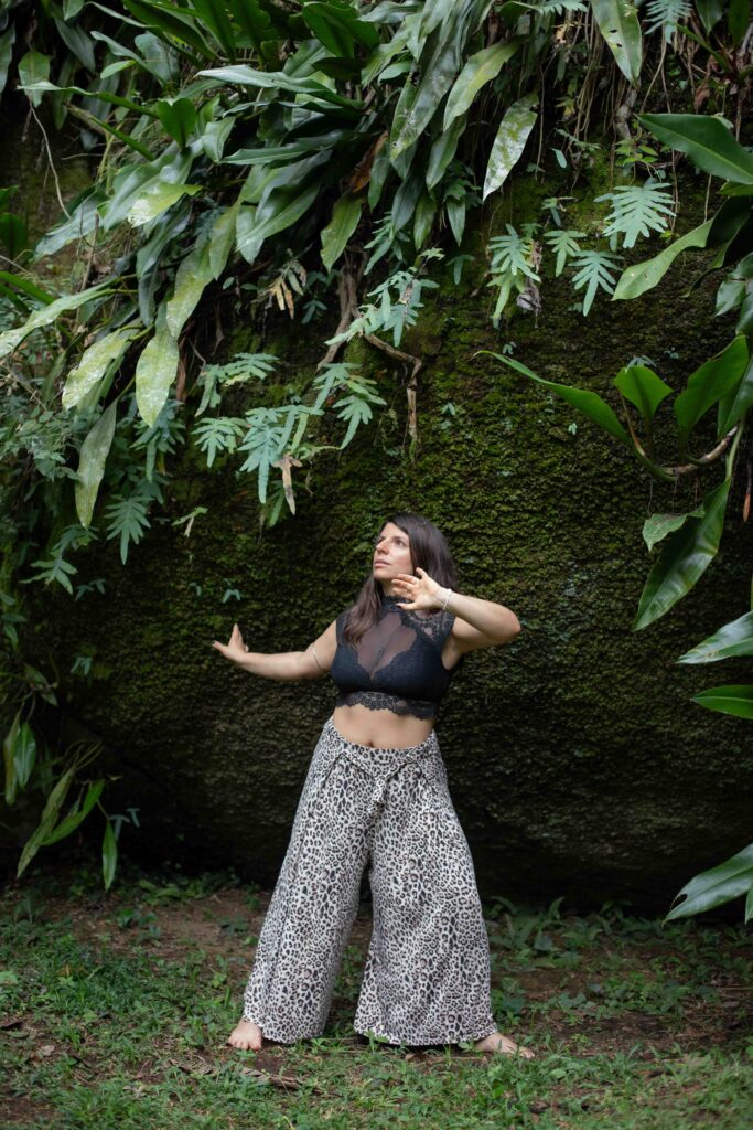 Ali, Selina dançou com sua própria verdade. Julgada tantas vezes por seu jeito expressivo de ser, agora ela se permitia expressar livremente sua sensualidade, sua presença encarnada, sua força em movimento. Diante da natureza, ela se fez natureza, conjunção do corpo tempo que ela habita.